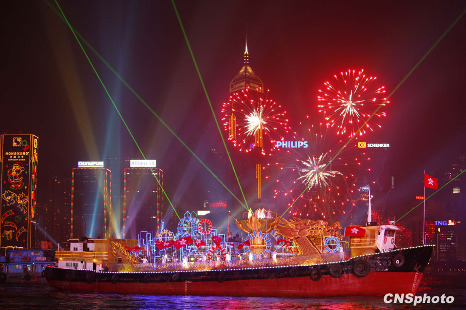 12月5日晚,第5屆東亞運(yùn)動(dòng)會(huì)開幕式在香港維多利亞港舉行,同時(shí)配以花船巡游、燈光效果和煙花匯演,成為一屆富有特色的水上開幕式。中新社發(fā) 盛佳鵬 攝