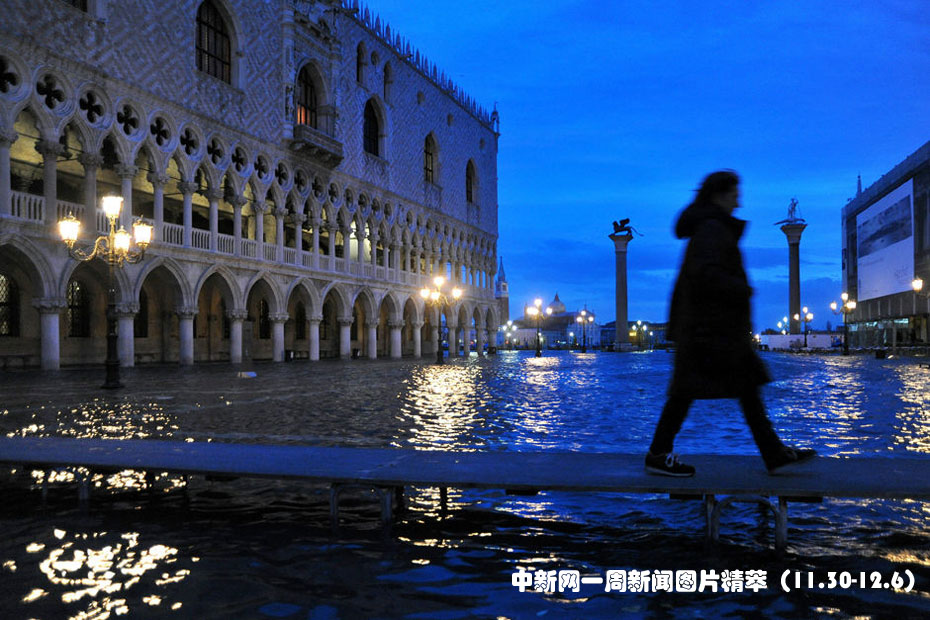 11月30日,意大利水城威尼斯受潮汐和一股強烈的熱帶風暴影響再次被洪水淹沒,部分地區(qū)最高水位達到1.31米。圖片來源:中國新聞網