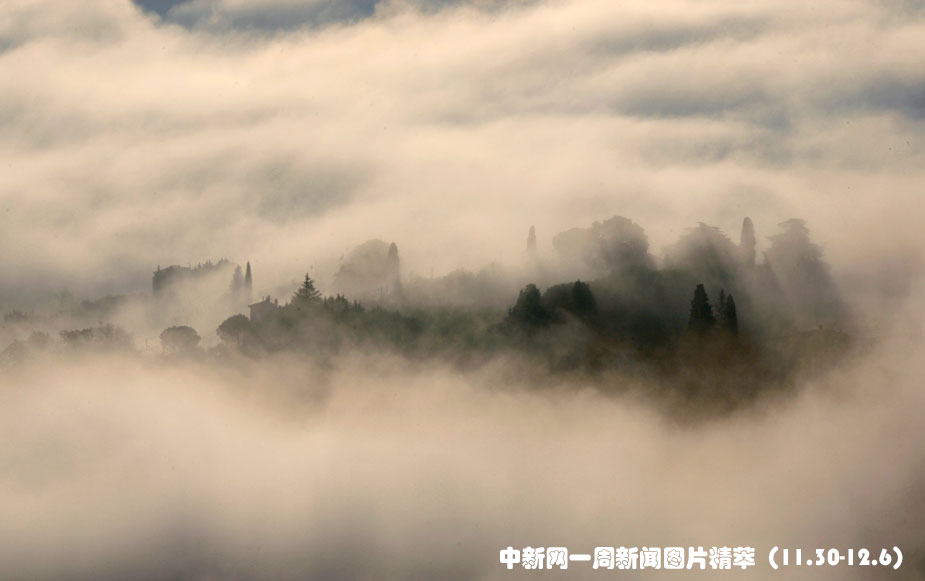 12月2日,大霧籠罩了意大利佩魯賈。圖片來源:中國(guó)新聞網(wǎng)