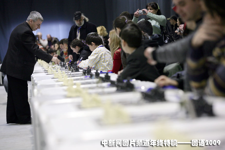 同時對弈對手最多:2月21日,保加利亞國際象棋選手基里爾格奧爾基耶夫與360人同時對弈,打破了吉尼斯紀(jì)錄。圖片來源:中國新聞網(wǎng)
