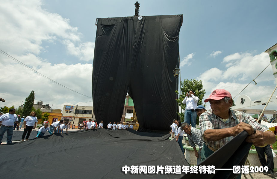 最長的褲子:6月14日,墨西哥人在墨西哥州的阿爾莫洛亞展示一條60.1米長的褲子,打破最長褲子的吉尼斯世界紀(jì)錄。圖片來源:中國新聞網(wǎng)