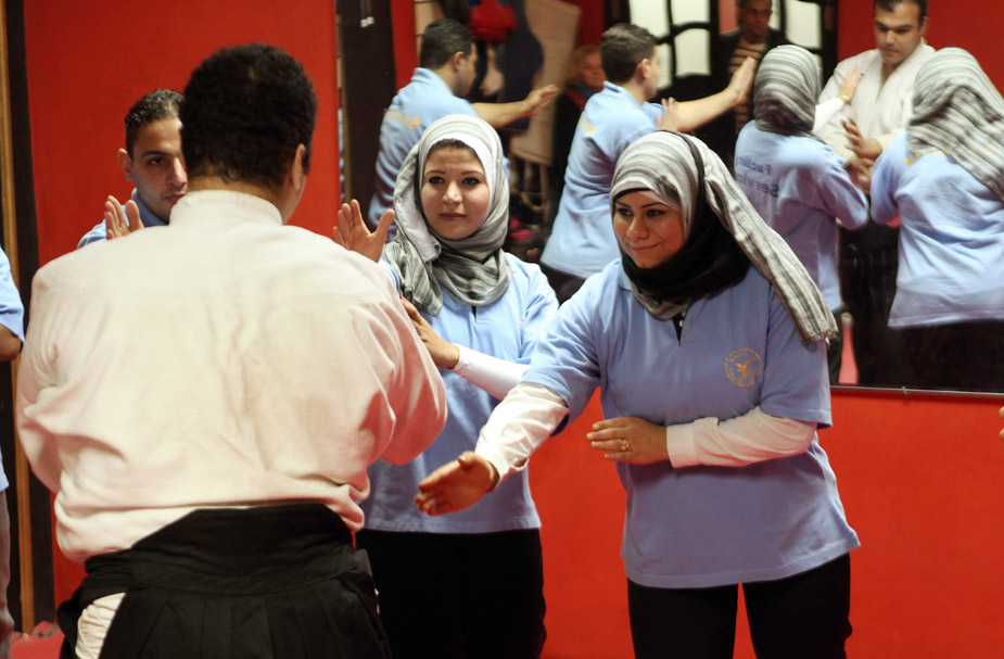 近日,埃及“女子警衛(wèi)”在開羅郊區(qū)一個(gè)體育館進(jìn)行訓(xùn)練。她們專為有一定社會(huì)地位和名氣的女性提供服務(wù)。圖片來源:中國新聞網(wǎng)
