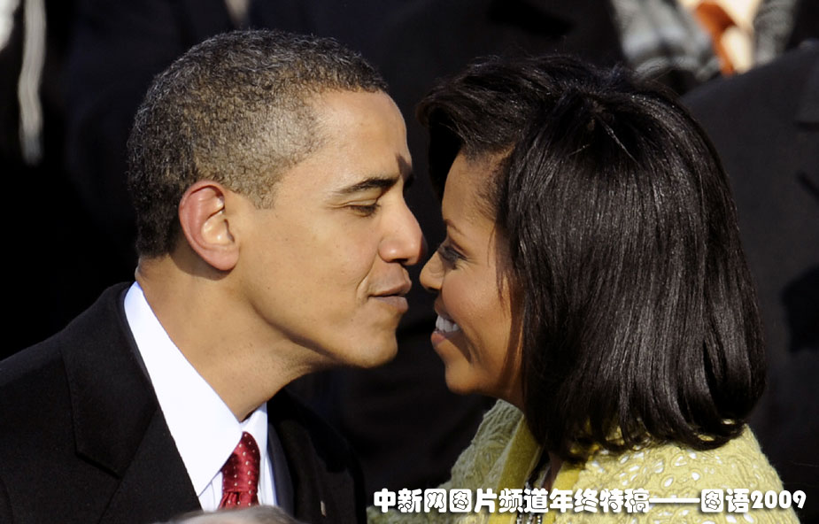 甜蜜的奧巴馬:2009年1月20日上午12點05分,四十七歲的奧巴馬在華盛頓國會山宣誓就職。當就職儀式結束后,奧巴馬深情親吻妻子。