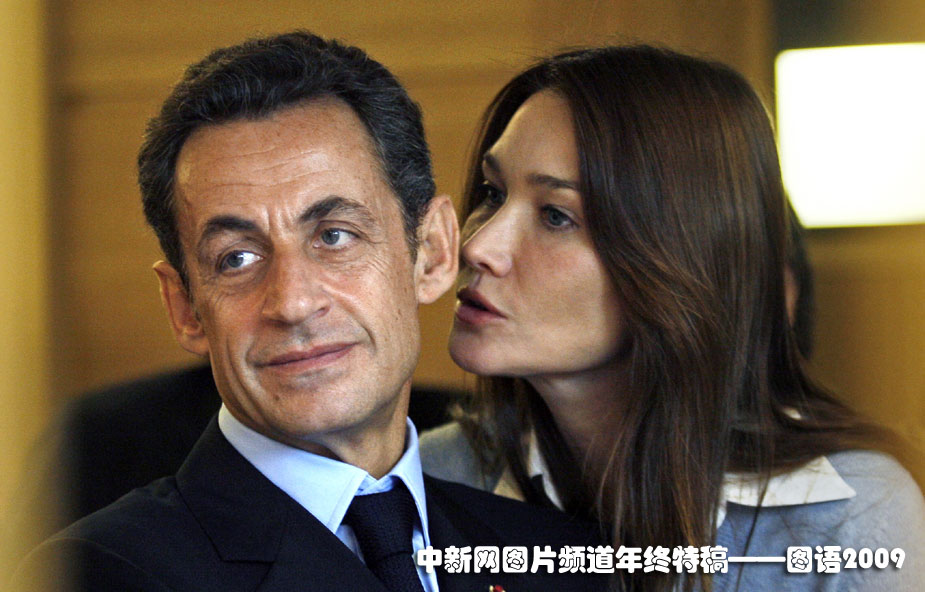 甜言蜜語:2009年11月2日,法國(guó)總統(tǒng)薩科奇和夫人貝魯尼在聽取醫(yī)院工作人員的匯告。