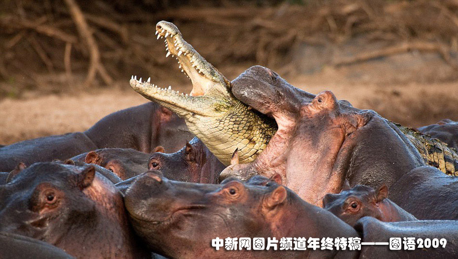 捷克野生動物攝影師Vaclav Silha在坦桑尼亞塞倫蓋蒂國家公園里拍攝到了非常令人震撼的場面。當(dāng)時,一條鱷魚悄悄混入了一群正在河里洗澡的河馬中,但由于與一頭帶著小河馬的河馬媽媽太過接近,它很快就被敏感的母河馬發(fā)現(xiàn)。憤怒的河馬們立刻對它發(fā)起了猛烈地攻擊,這條冒失的鱷魚很快死于非命。