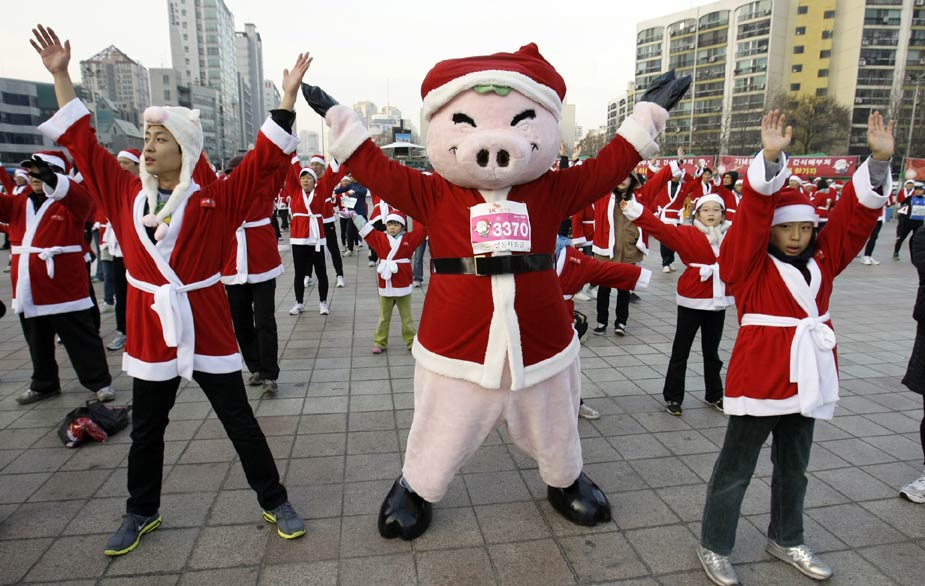 12月12日,“圣誕老人”馬拉松賽跑當(dāng)日在首爾舉行。超過一千名“圣誕老人”參加了此次長(zhǎng)跑活動(dòng)。
