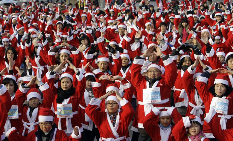 12月12日,“圣誕老人”馬拉松賽跑當(dāng)日在首爾舉行。超過(guò)一千名“圣誕老人”參加了此次長(zhǎng)跑活動(dòng)。