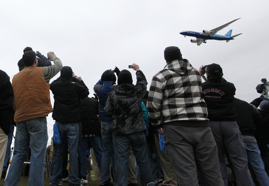 12月15日,延遲兩年多之后,美國波音公司最新夢幻客機波音787終于在華盛頓州升空試飛,兩萬五千多人忍受寒冷觀看了試飛過程。