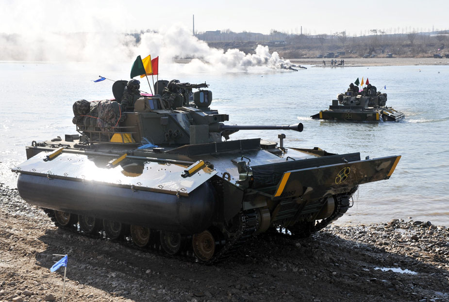 12月16日,韓國第20師團機械化部隊在京畿道驪州南漢江一帶進行大規(guī)模渡河實戰(zhàn)訓(xùn)練。該訓(xùn)練以培養(yǎng)戰(zhàn)斗執(zhí)行能力為重點。圖片來源:中國新聞網(wǎng)
