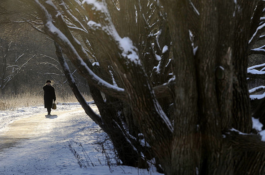 12月16日,俄羅斯莫斯科一名女子在雪中行走。