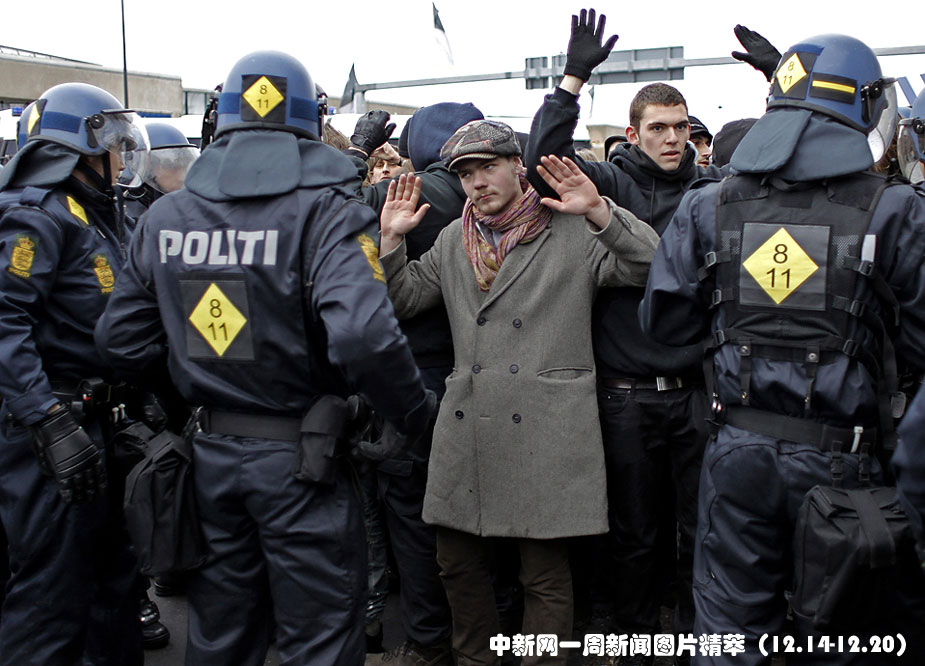 13日(周日),哥本哈根警方扣留了一群示威者。聯(lián)合國(guó)氣候變化大會(huì)正在當(dāng)?shù)卣匍_(kāi)。圖片來(lái)源:中國(guó)新聞網(wǎng)