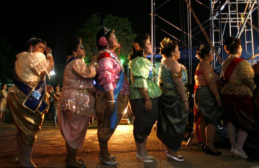 2009年12月19日,泰國(guó)大城,30多位體重超過(guò)80公斤的選手參加了胖美人大賽的角逐。