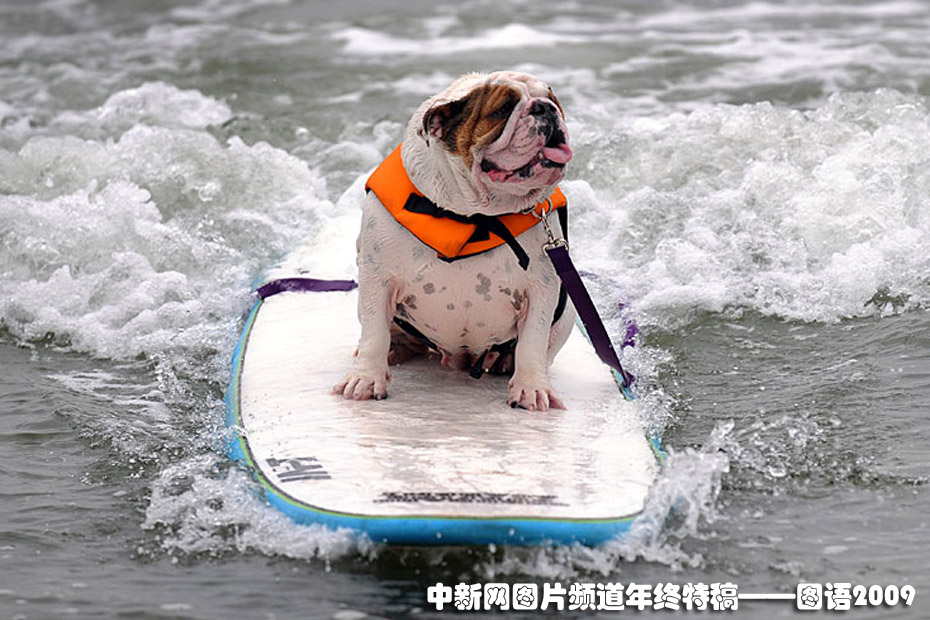 小狗沖浪比賽-讓人忍俊不禁--6月20日,在美國(guó)加利福尼亞州帝國(guó)沙灘舉行了一場(chǎng)小狗沖浪比賽,小狗們表現(xiàn)得十分認(rèn)真。