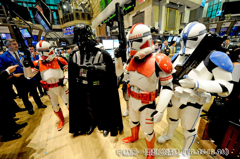 12月22日,為了紀(jì)念《星球大戰(zhàn)》這個史詩般的影片,紐約證交所邀請了盧卡斯公司的行政人員以及《星球大戰(zhàn)》中的角色來到紐約證交所,并為當(dāng)日股市開盤。圖片來源:中國新聞網(wǎng)>>點擊觀看詳細(xì)內(nèi)容