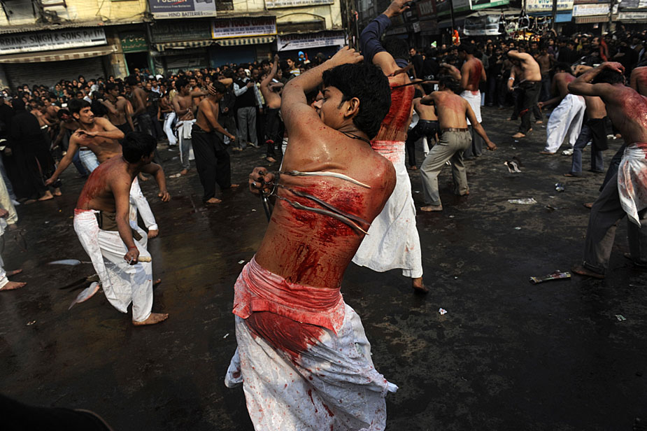 12月28日,印度穆斯林慶祝阿舒拉節(jié)。一些當(dāng)?shù)啬滤沽衷趦x式上用鐵鞭抽打自己,以此慶祝節(jié)日。圖片來(lái)源:中國(guó)新聞網(wǎng)