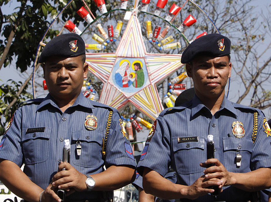 12月29日,菲律賓首都南部的塔吉格市警察部隊為了防止警務(wù)人員在慶祝新年時胡亂開槍,下令用膠紙把槍口封起來。圖片來源:中國新聞網(wǎng)