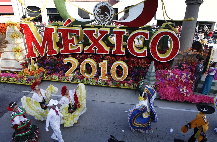 美國當(dāng)?shù)貢r間1月1日,第121屆美國玫瑰花車大游行在加州帕薩迪納市隆重舉行。著名影星成龍助陣中國上海世博花車。圖片來源:中國新聞網(wǎng)