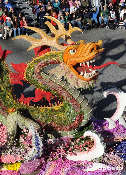 美國當?shù)貢r間1月1日,第121屆美國玫瑰花車大游行在加州帕薩迪納市隆重舉行。著名影星成龍助陣中國上海世博花車。圖片來源:中國新聞網(wǎng)