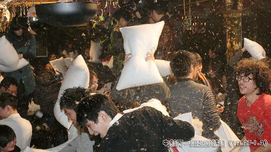 12月27日下午,武漢漢口江灘夜色酒吧,80特區(qū)舉行五百人枕頭大戰(zhàn)狂歡派對(duì)。80后青年在主持人帶領(lǐng)下展開(kāi)了3個(gè)小時(shí)的互動(dòng)游戲。在主打活動(dòng)“枕頭大戰(zhàn)”中,青年人歡笑、奔跑、跳躍,用裝滿羽毛的白色大枕頭展開(kāi)對(duì)決。據(jù)了解,枕頭大戰(zhàn)是當(dāng)今流行的一種緩解工作、生活壓力的減壓聚會(huì)方式。圖片來(lái)源:中國(guó)新聞網(wǎng)>>點(diǎn)擊觀看詳細(xì)內(nèi)容