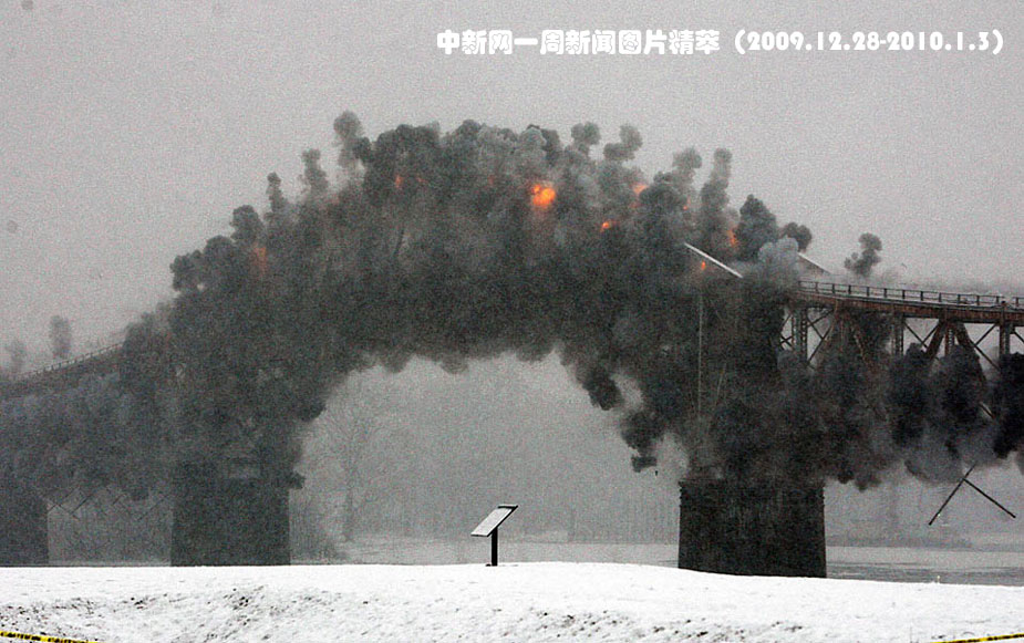周一(28日),連接紐約州克朗波音特與佛蒙特州艾迪生的尚普蘭湖大橋被爆破。尚普蘭大橋全長2,184英尺(約合665米),是同類橋梁中第一座被用于公路交通的,其使用歷史達80年。由于混凝土橋墩受到腐蝕,尚普蘭大橋在今年10月被關閉,新的大橋預計在2011年夏天開放。圖片來源:中國新聞網(wǎng)