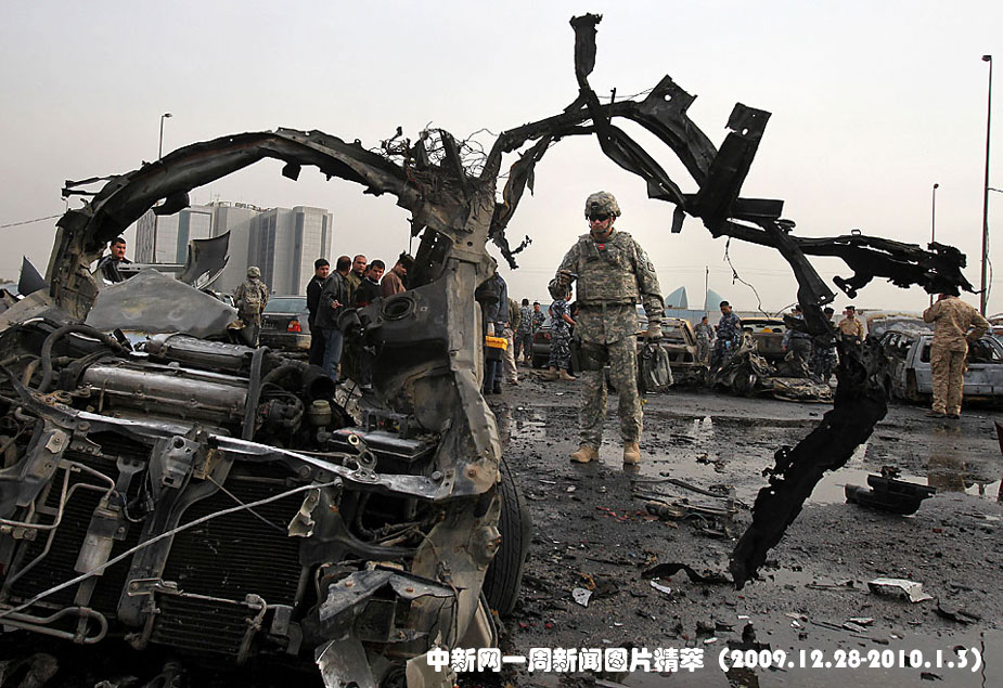 周二(29日),巴格達東部的政府辦公地發(fā)生爆炸事件,駐阿美軍士兵正在檢查案發(fā)地。圖片來源:中國新聞網(wǎng)