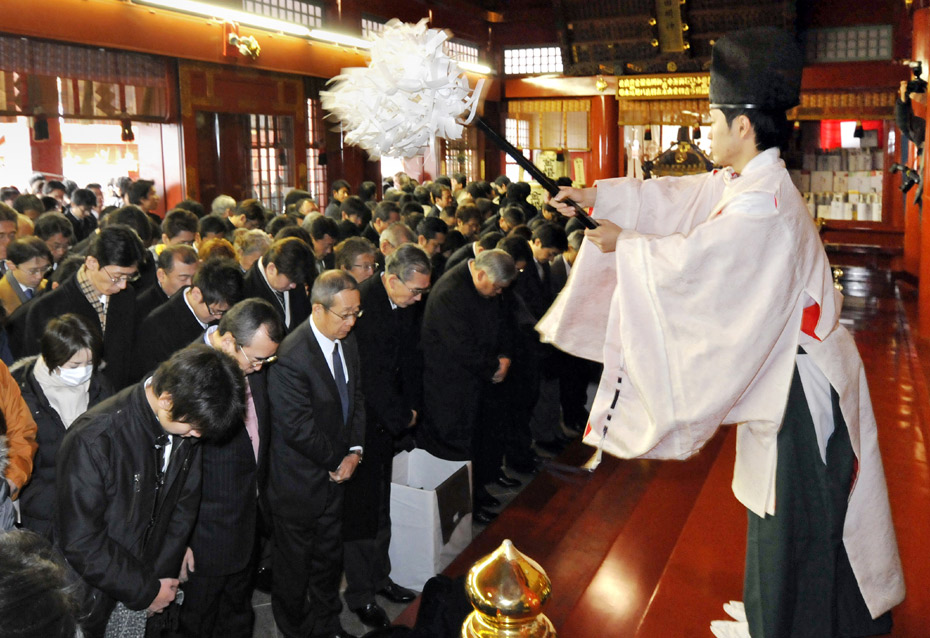 2010年1月4日,日本東京,商人聚集在神田神社里祈福,希望在新的一年里生意興隆。當(dāng)天是日本股市2010年首個交易日,市場升勢延續(xù)。圖片來源:中國新聞網(wǎng)