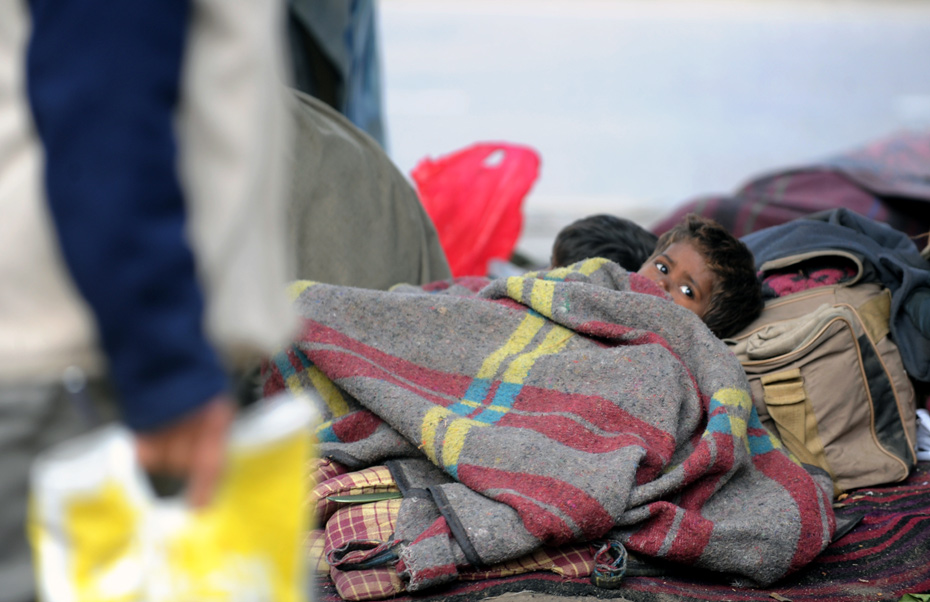 1月4日,印度新德里,一個(gè)無家可歸的兒童蜷縮在毯子里,印度官員稱,該國北部地區(qū)突遭寒流襲擊造成至少40人死亡,促使政府4日不得不關(guān)閉上千所學(xué)校并發(fā)放取暖燃料 。