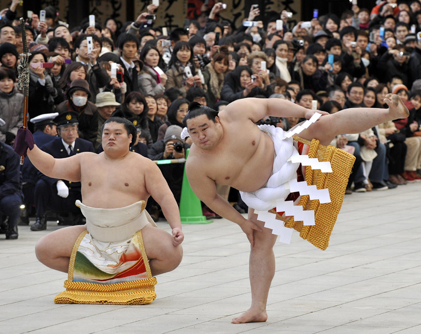 1月6日,日本舉行了傳統(tǒng)的相撲表演迎新年活動。