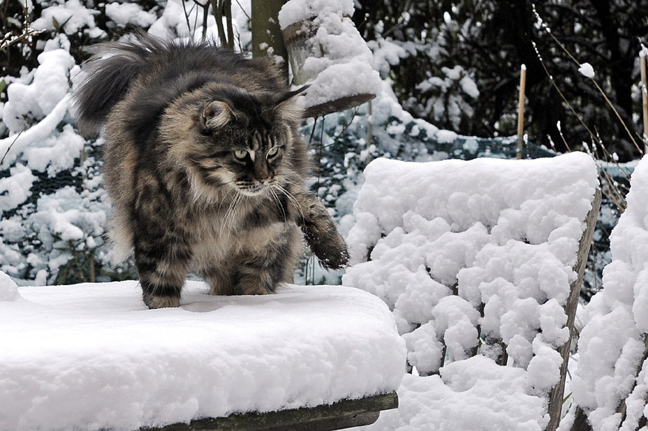 1月3日,德國(guó),貓咪“杜馬”好像發(fā)現(xiàn)了雪中的“獵物”。
