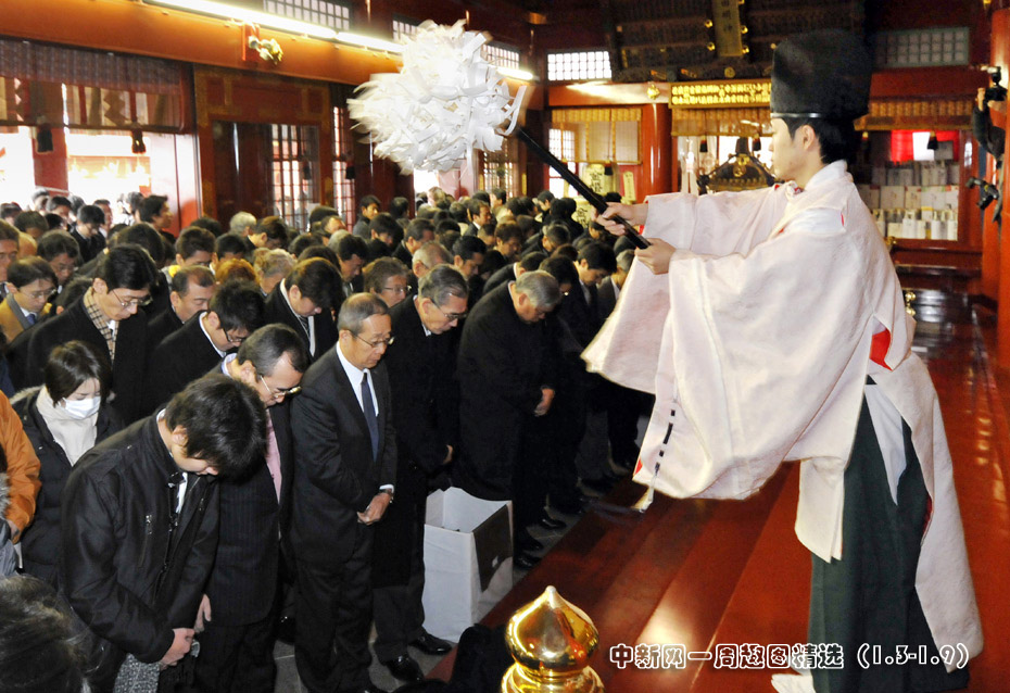 2010年1月4日,日本東京,商人聚集在神田神社里祈福,希望在新的一年里生意興隆。當(dāng)天是日本股市2010年首個交易日,市場升勢延續(xù)。圖片來源:中國新聞網(wǎng)>>點擊觀看詳細內(nèi)容