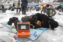 韓國(guó)數(shù)千民眾鑿冰釣魚(yú)