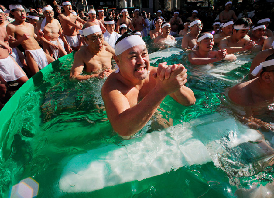 2010年1月10日,日本東京,眾多健身愛(ài)好者一同在冷水中浸泡,祈禱自己在新一年身體健康,并展示自己的體魄。
