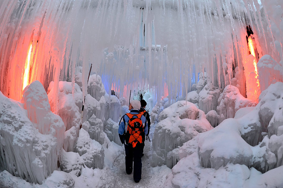 近日,瑞士藝術家卡爾豪斯在瑞士黑湖附近的弗里堡修建了一座美侖美奐的冰宮,令眾多游客流連忘返。圖片來源:中國新聞網