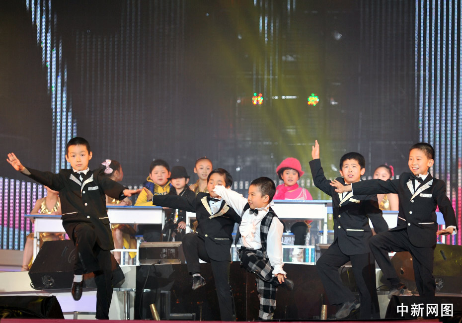 1月11日晚,第二屆音樂(lè)風(fēng)云榜新人盛典在京舉行,盛典現(xiàn)場(chǎng)的音樂(lè)課上,兒童版的Wonder Girl、Super Junior、邁克爾·杰克遜、曾軼可、大張偉紛紛登臺(tái)獻(xiàn)藝,讓現(xiàn)場(chǎng)觀眾們笑聲不斷。中新網(wǎng)記者 金碩 攝