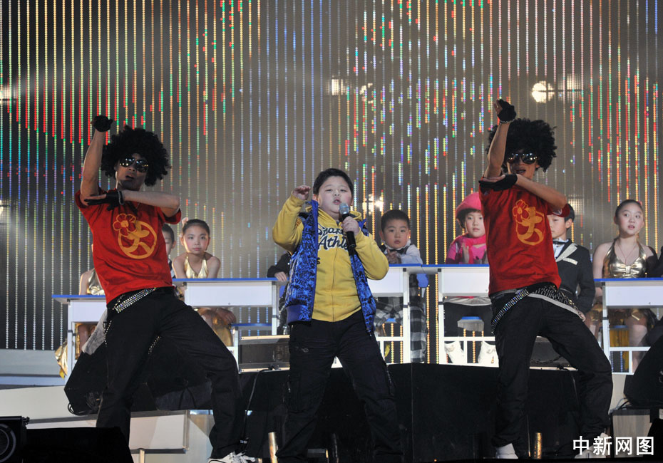 1月11日晚,第二屆音樂(lè)風(fēng)云榜新人盛典在京舉行,盛典現(xiàn)場(chǎng)的音樂(lè)課上,兒童版的Wonder Girl、Super Junior、邁克爾·杰克遜、曾軼可、大張偉紛紛登臺(tái)獻(xiàn)藝,讓現(xiàn)場(chǎng)觀眾們笑聲不斷。中新網(wǎng)記者 金碩 攝