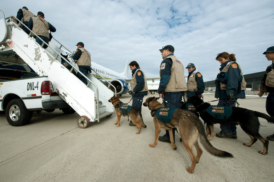 圖為美國救援隊準備出發(fā)。海地發(fā)生強烈地震,傷亡慘重,國際社會在第一時間紛紛伸出援手。中國、美國、法國等多個國家和地區(qū)的救援隊已集結完畢,奔赴海地地震災區(qū)。圖片來源:中國新聞網(wǎng)