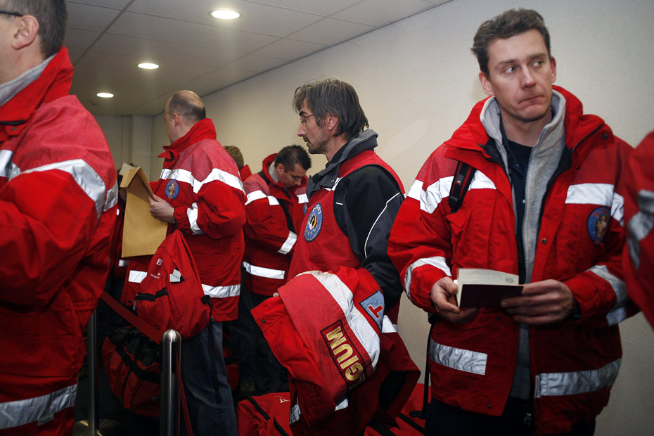 圖為比利時救援隊。海地發(fā)生強烈地震,傷亡慘重,國際社會在第一時間紛紛伸出援手。中國、美國、法國等多個國家和地區(qū)的救援隊已集結(jié)完畢,奔赴海地地震災(zāi)區(qū)。圖片來源:中國新聞網(wǎng)