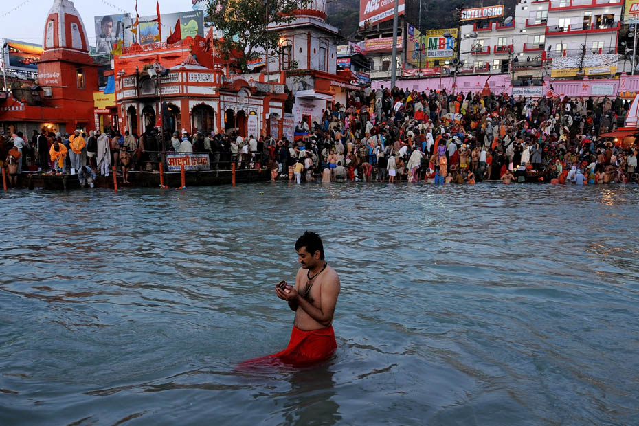 1月14日,數(shù)千名印度教信徒前往恒河參加世界上最大的宗教集會(huì)大壺節(jié),并在印度圣河——恒河進(jìn)行了沐浴儀式。圖片來(lái)源:中國(guó)新聞網(wǎng)