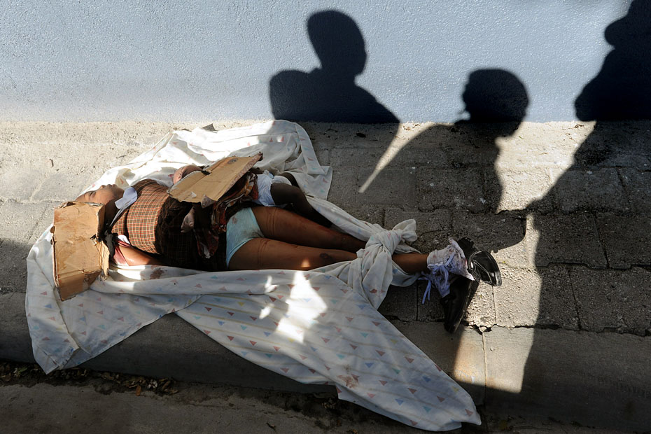 海地7級大地震后,街邊一排排無名尸體已開始腐爛,在巨大的廢墟下時不時的傳出被壓難民的呻吟聲,幾乎夷為平地的首都太子港淪為露天難民營。圖片來源:中國新聞網(wǎng)