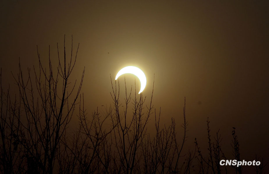 本世紀(jì)首場,也是全球未來1000年內(nèi)環(huán)食持續(xù)時間最長的日環(huán)食1月15日劃過天際。日環(huán)食帶從印度洋經(jīng)過緬甸進(jìn)入中國國,由云南經(jīng)四川省的部分地區(qū),再穿過重慶市、湖北省西北部,直至華北地區(qū)。圖片來源:中國新聞網(wǎng)