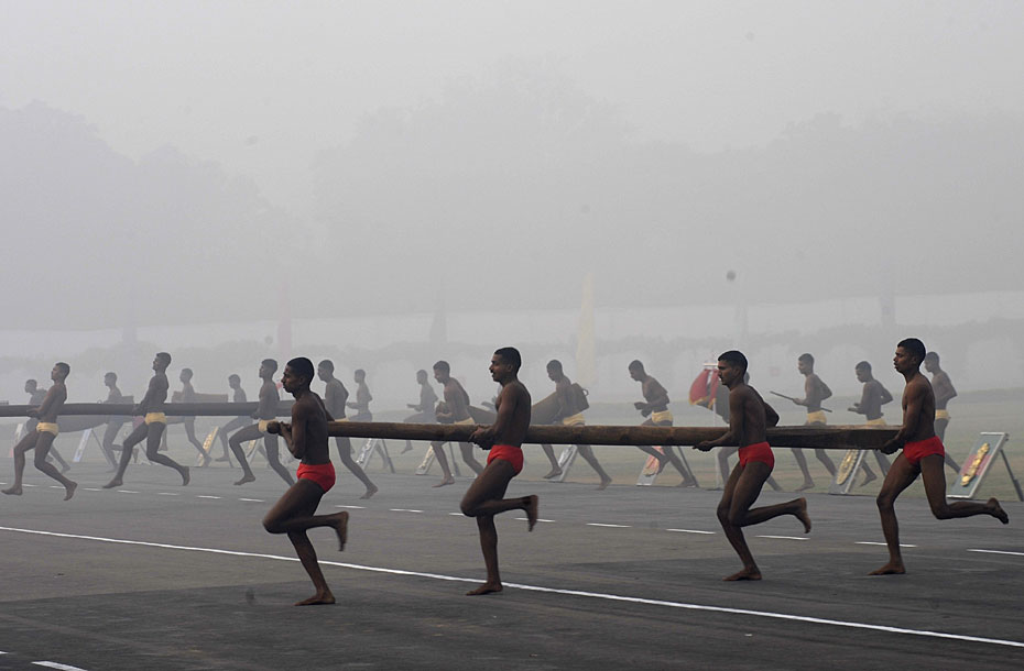 圖為印度陸軍在建軍節(jié)上表演。
