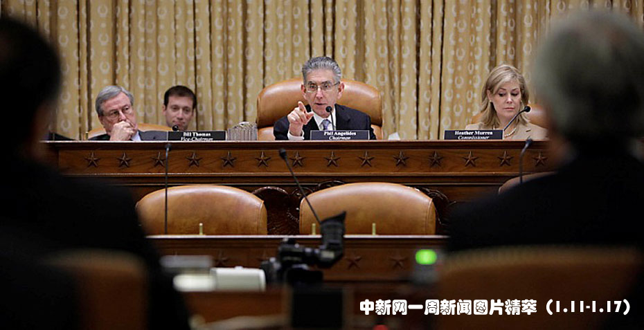 1月13日(周三),金融危機調(diào)查委員會(Financial Crisis Inquiry Commission)主席安吉利得斯(Phil Angelides,中)在國會山(Capitol Hill)一個聽證會上提問。在談及某個問題時,他將高盛集團(tuán)(Goldman Sachs)一位高管比作二手車推銷員。圖片來源:中國新聞網(wǎng)