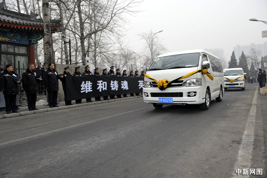 1月19日,北京民眾自發(fā)守候在通往北京八寶山殯儀館的路口迎接英烈的靈柩。當(dāng)日,八位海地地震遇難中國(guó)維和警察的靈柩搭乘專機(jī)將抵達(dá)北京。中新網(wǎng)記者 金碩 攝