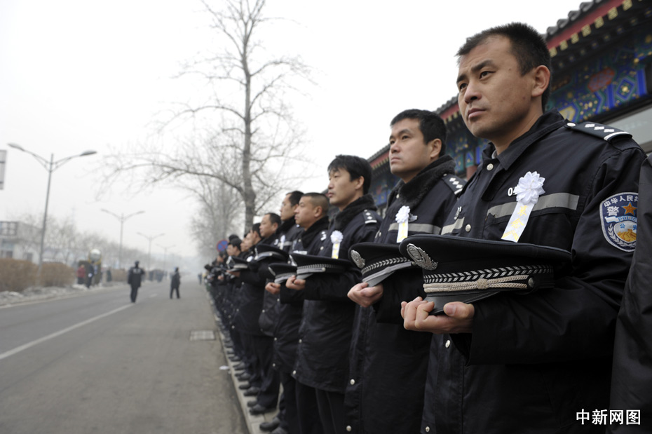 1月19日,北京民眾自發(fā)守候在通往北京八寶山殯儀館的路口迎接英烈的靈柩。當(dāng)日,八位海地地震遇難中國(guó)維和警察的靈柩搭乘專機(jī)將抵達(dá)北京。中新網(wǎng)記者 金碩 攝