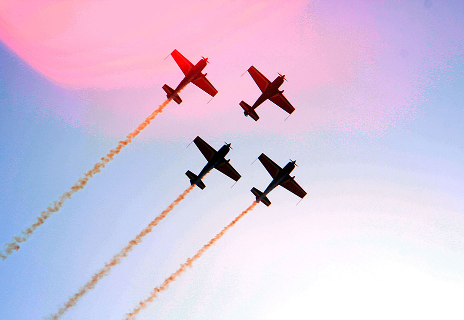 1月21日,巴林國際航空展在毗鄰巴林F1賽場的SAKHIR空軍基地開幕。在開幕式上,飛行表演隊(duì)舉行了異彩紛呈的飛行表演。圖片來源:中國新聞網(wǎng)
