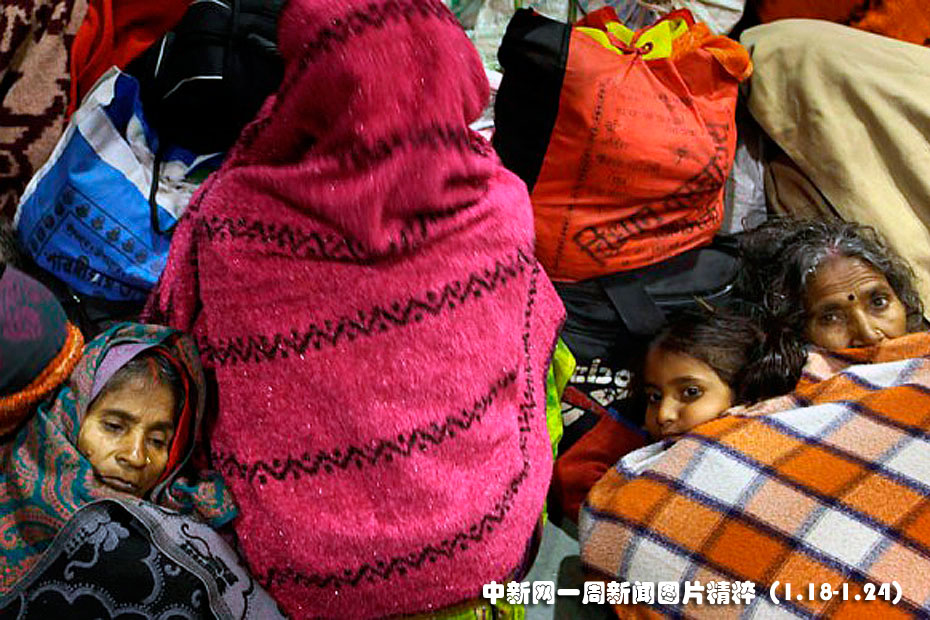1月18日,乘客們?cè)谟《韧呃{西的火車(chē)站候車(chē)時(shí)裹著毯子取暖。大霧和嚴(yán)寒天氣導(dǎo)致印度北部多個(gè)地區(qū)的交通中斷,反常的寒冷天氣已致使數(shù)十人喪生。圖片來(lái)源:中國(guó)新聞網(wǎng)
