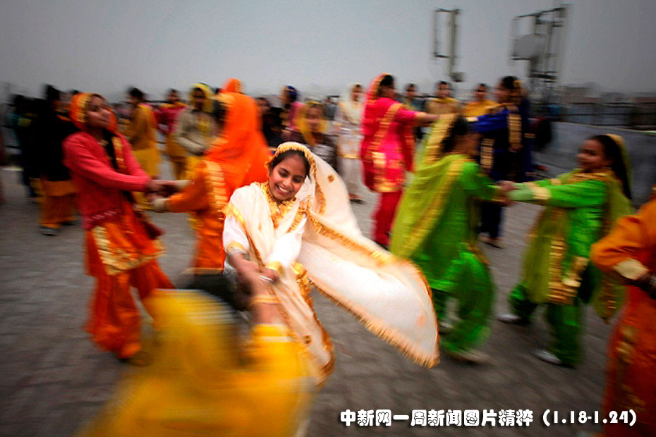 1月19日,印度阿姆利則一群女學生在印度春節(jié)前夜跳著傳統(tǒng)舞蹈。圖片來源:中國新聞網(wǎng)