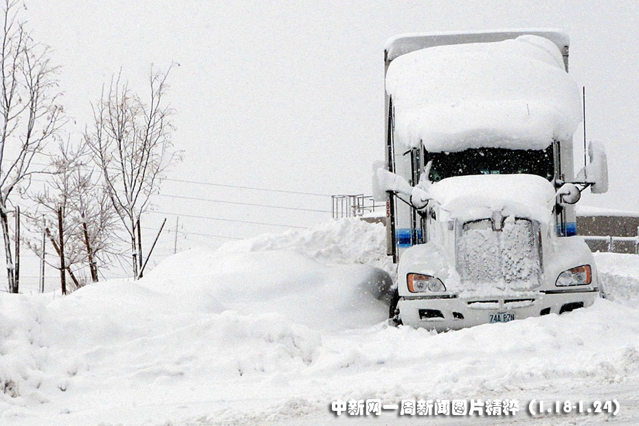 1月21日,美國亞利桑那州北部因大雪影響貨車與客車均被迫停駛。圖片來源:中國新聞網(wǎng)