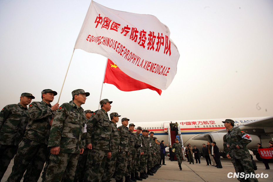 1月24日18時,由中國人民解放軍醫(yī)護(hù)人員和管理人員組成的中國醫(yī)療防疫救護(hù)隊(duì)一行40人乘坐軍運(yùn)包機(jī)離開北京,啟程前往海地進(jìn)行人道主義救援任務(wù)。