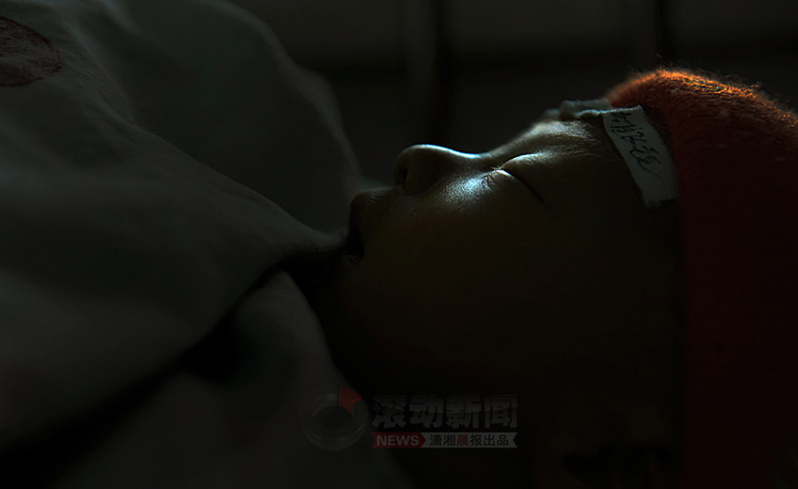 1月16日,小振和一個(gè)人安靜地躺在醫(yī)院的小床上睡著覺(jué)。瀟湘晨報(bào) 記者 楊抒懷 攝